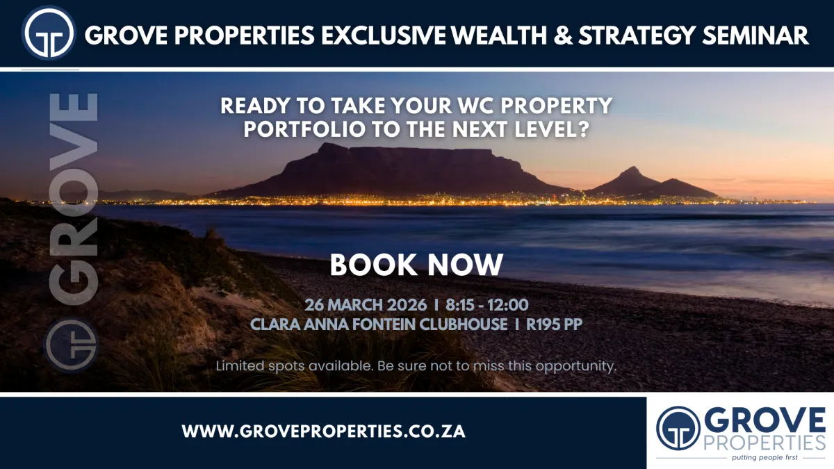 Serious property investors should attend the Grove Properties seminar because it delivers strategic, high-level insights specifically tailored to experienced portfolio owners. Hosted in the Northern Suburbs of Cape Town, this exclusive event brings together respected industry experts, including leading economist, Kobus Lamprecht, to provide data-driven research, advanced tax and structuring strategies, and practical asset management techniques. Attendees will gain actionable tools to optimise returns, improve tax efficiency, protect generational wealth, and uncover new growth opportunities — all while networking with like-minded high-net-worth investors focused on long-term portfolio performance.